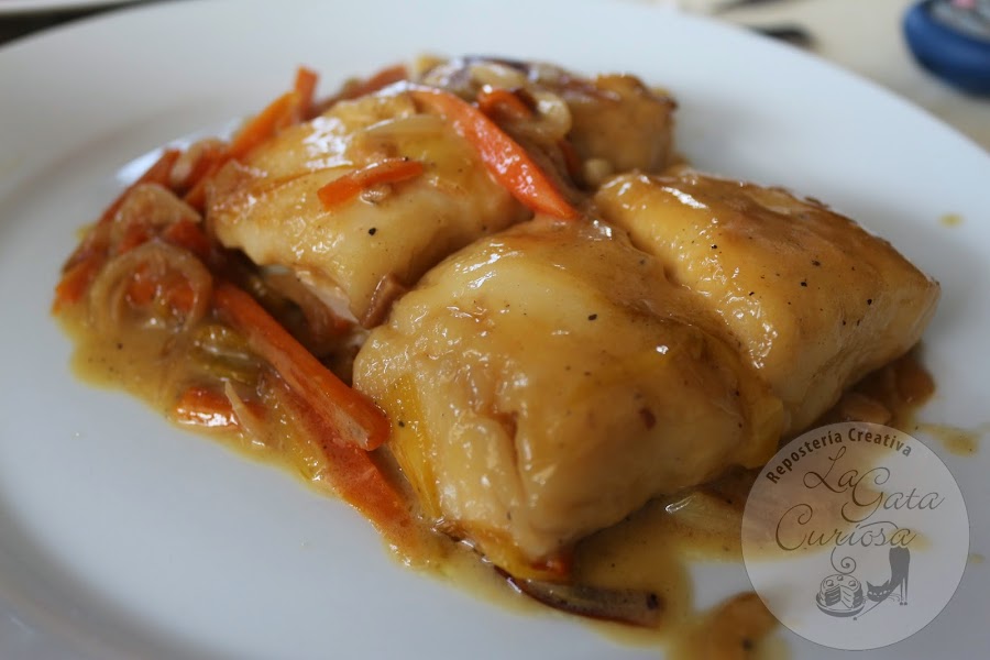 Mientras reduce la salsa salamos el pescado y lo pasamos por harina. En una sartén con abundante aceite lo doramos ligeramente, no mucho porque tiene que terminar de hacerse junto con la salsa.