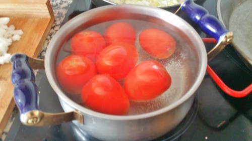 Escalda los tomates un minuto en agua cliente para poder pelarlos fácilmente.