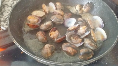 Este paso es para evitar introducir en el guiso alguna almeja que no se abra ya que esto significa que ya estaba muerta cuando se ha empezado a cocinar.