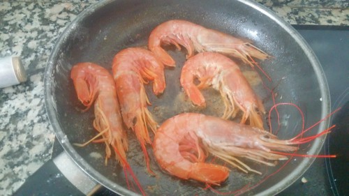 8.-En la salsa que tenemos al fuego añade los pescado, almejas y el gambón.