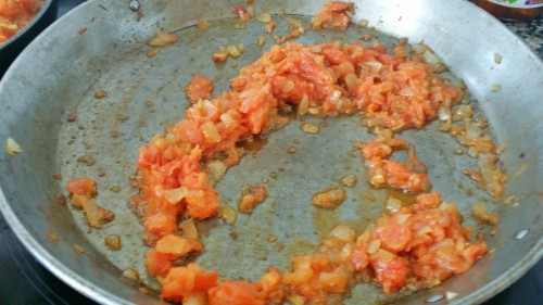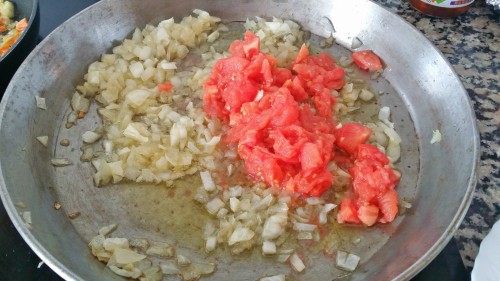 Cuando empiece a dorarse la cebolla, agrega los tomates.