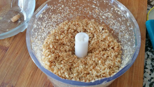 y pasa todo a un mortero o en una picadora. Añade las hebras de azafrán y las almendras y maja bien.