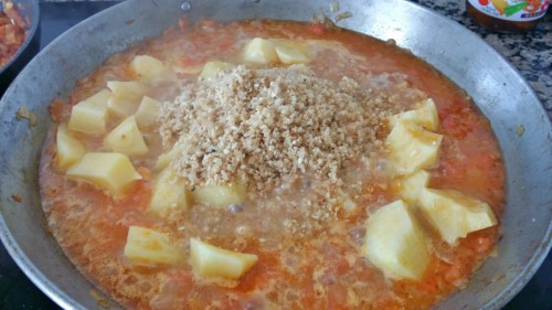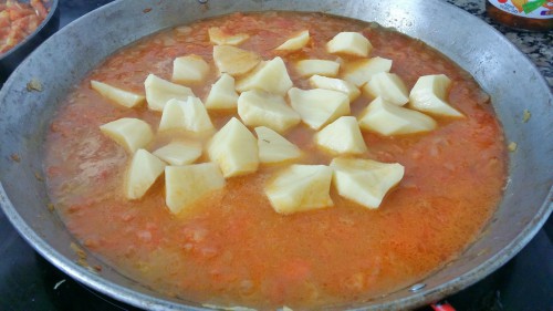Pero además tampoco hay una única receta sino que cada uno la adapta como quiere: se pueden preparar suquets con y sin patatas. En algunas ocasiones, las patatas se doran en aceite primero y luego se añaden al caldo. Nosotros esto no lo hemos hecho.
