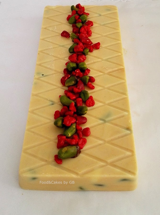 TURRÓN DE CHOCOLATE BLANCO, PISTACHOS Y FRAMBUESAS LIOFILIZADAS