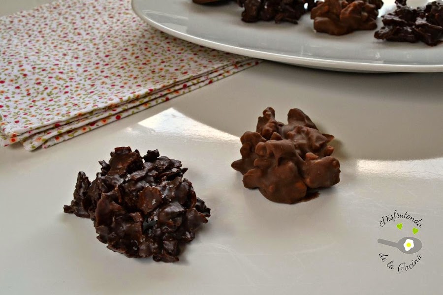 Cuando en diciembre recibí mi caja Degustabox, en medio del disgusto de descubrir antes de las Navidades que tenía diabetes gestacional y tener que hacerme a la idea que este año no iba ni a oler los canelones de mi madre, ni los turrones, y que aún seguía con nauseas, me quedé un poco chof porque no sabía que preparar. Pero finalmente, decidí hacer estas riquísimas rocas de chocolate, y os aseguro que están para chuparse los dedos. Lo admito, me comí un mini cachito para no quedarme con el antojo, y me encantó.