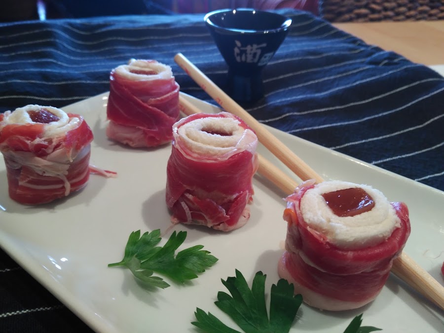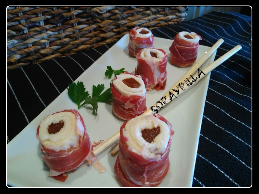 - Envolvemos ahora los rollitos con el jamón, y a disfrutar!!