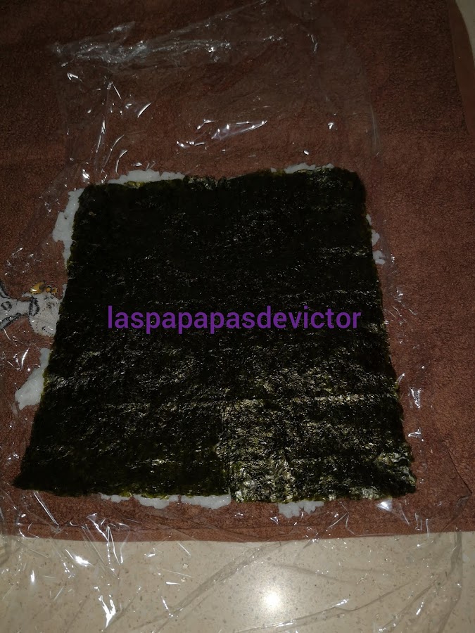 Yo puse un trapo de cocina, encima un papel film y después el alga nori