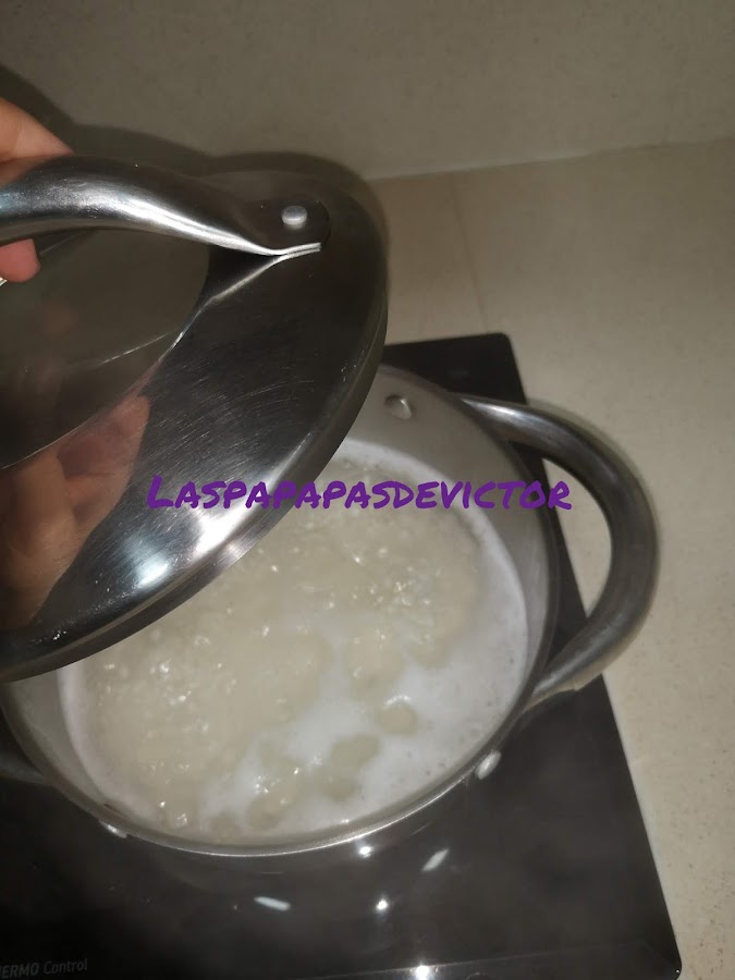 Un truquito: para saber si está el arroz poner una cucharada de madera o de plástico enmedio si se queda sin caerse es que ya estará.