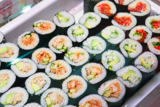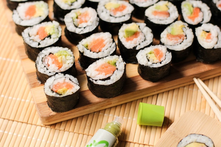 Una vez tengamos todos los rollitos y makis preparados vamos a ir cortándolos y es muy importante tener un buen cuchillo que lo mojaremos un poco con agua cada vez que cortemos.