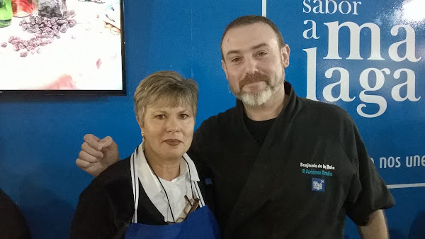El realizó un show cooking con productos malagueños, en el que la organización nos pidió a mi buena amiga, gran bloguera Concepción Garcia , éste es su estupengo blog y a mi que le sirviéramos de Minarau……