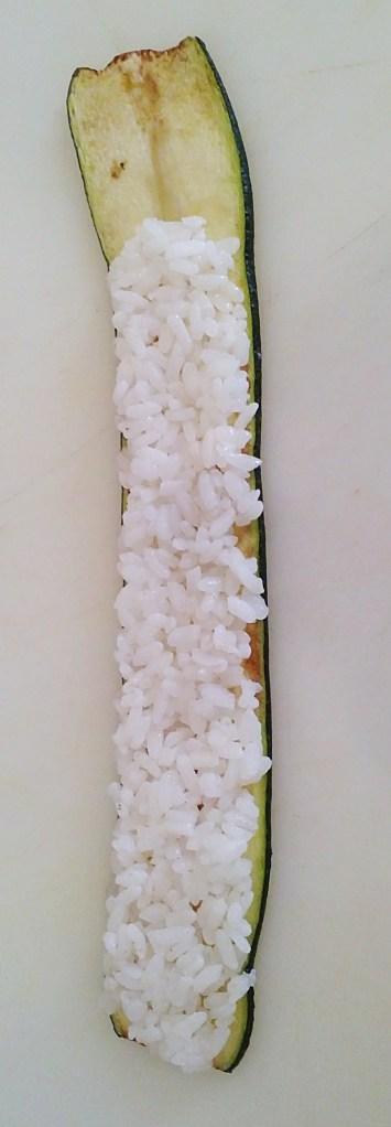 Arroz redondo,calabacines alargado,salmón ahumado,paté de aceitunas negras,vinagre de arroz,azúcar,salsa de sojaComenzamos preparando el arroz: