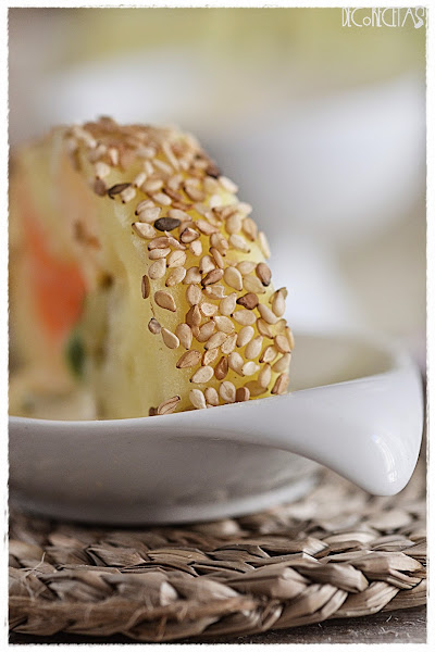En el momento de servir, sacamos de la nevera, envolviéndolo en el sésamo con cuidado y acompañamos de mahonesa al gusto