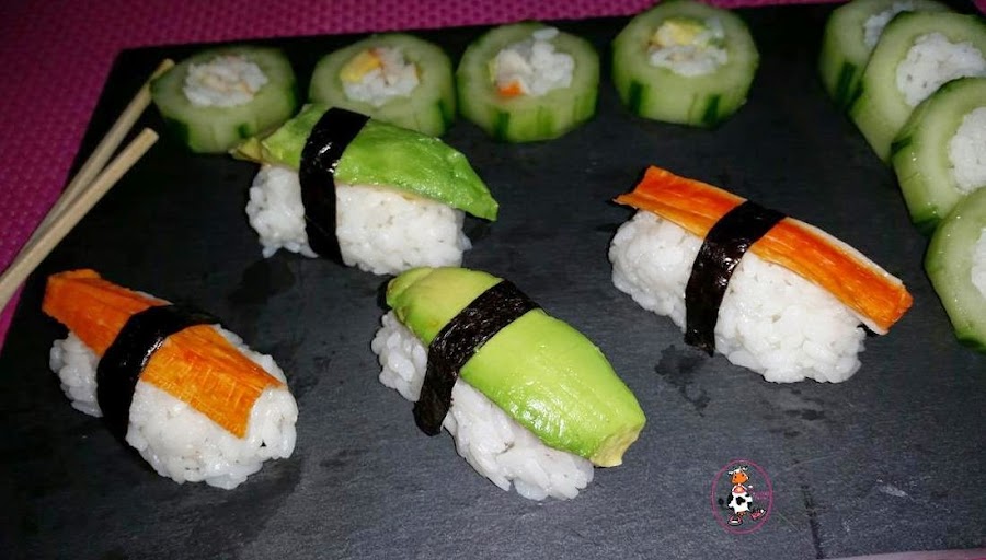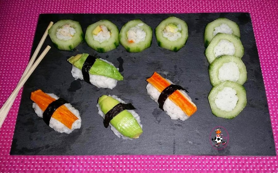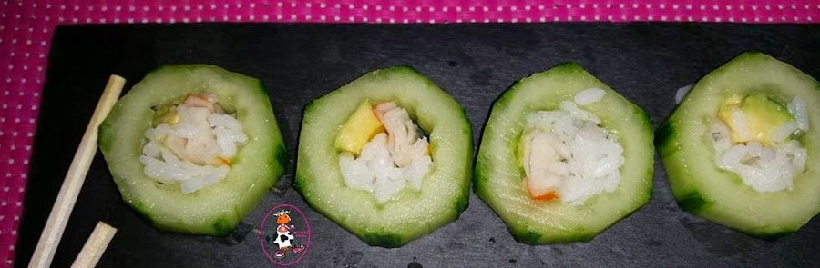 Después de unos días sin publicar ninguna receta creo que ya era hora jajajaj... Y después de elegir que receta publicaba...por fin me he decidido (es que tengo varias recetas en borradores). "Sushi"... La receta facilita sobre todo porque no tenéis que estar montando los rollos del sushi con el alga nori sino que lo vamos hacer con pepino :D Vamos con la recetita...