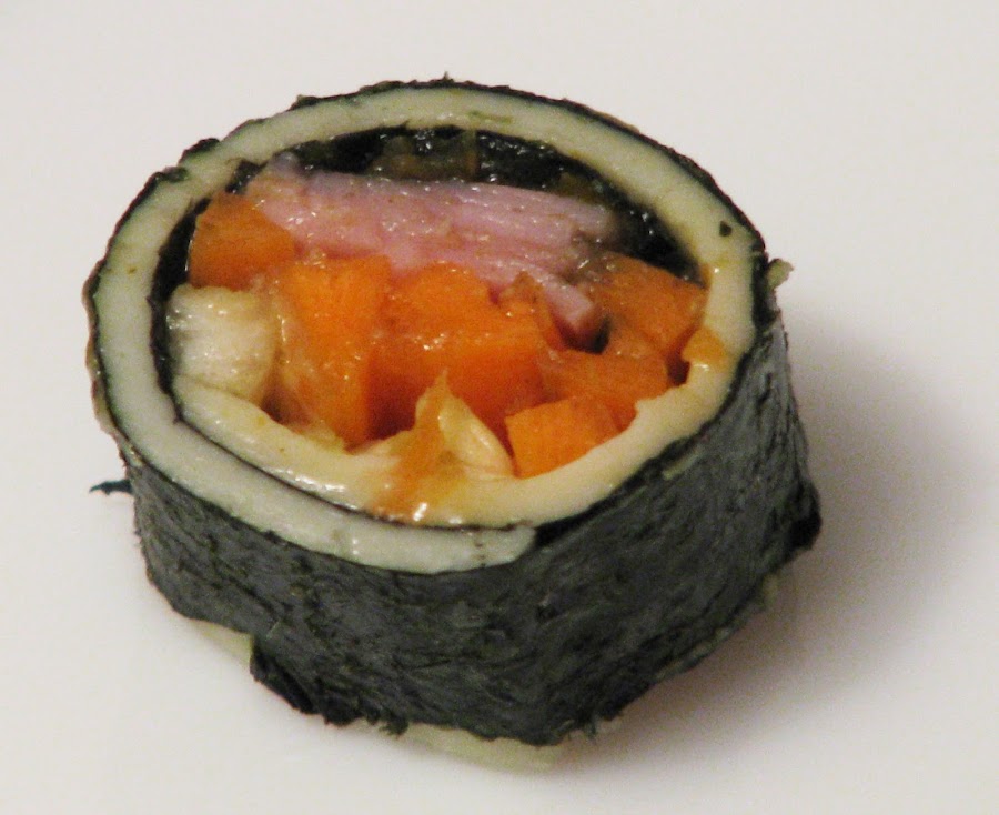 - Con un cuchillo ancho, parte los rollitos en makis con cuidado de que no se rompan.