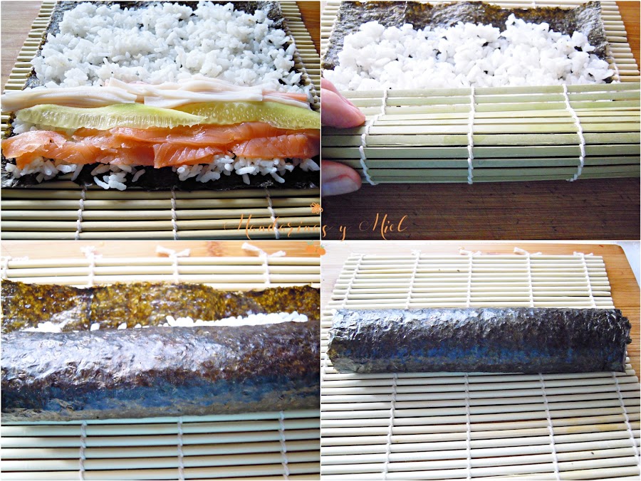 Después de leer las ideas y ayudas que nos dieron algunas compañeras del reto, me di cuenta de que podía hacerlo con ingredientes que no estuvieran crudos, y como no quería perderme el reto decidí hacerlo con salmón ahumado, surimi y pepino.