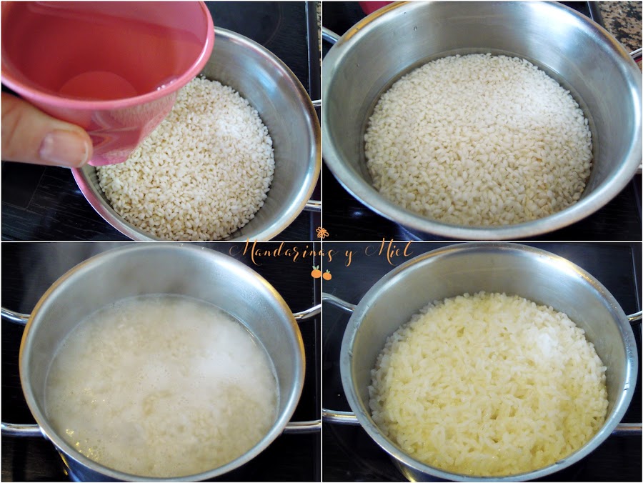 Primero de todo prepara el arroz:Mide el arroz en un bol o taza grande para tomar luego la medida del agua que debe ser la misma que de arroz.