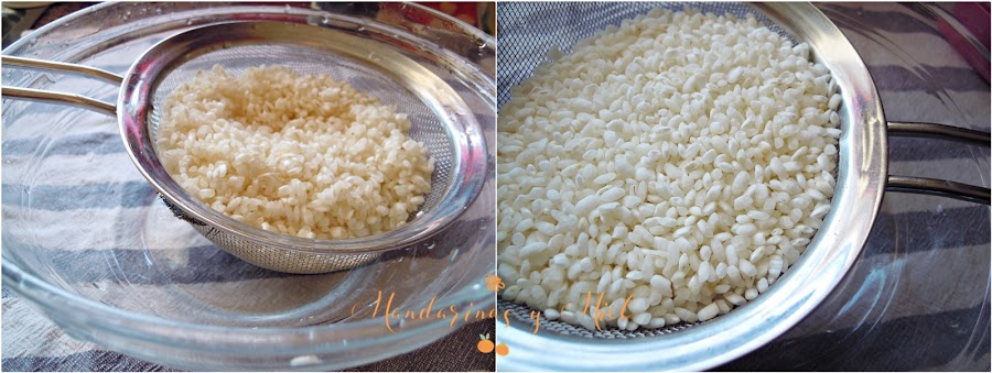 Cuela el agua enseguida y repite el mismo proceso 4 o 5 veces más o hasta que veas que el agua está clara, esto es para quitarle el almidón.