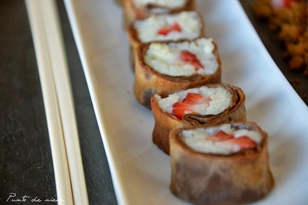 Pues bien, el otro día fui a un japonés con mis amigas y en la carta, como era de esperar, había mucho sushi. Hasta ahí todo bien. Sin embargo yo, haciendo uso de mi maravillosa estrategia, me fui directamente al postre. ¿Y qué me encontré? ¡más sushi! ¡sushi dulce!!!