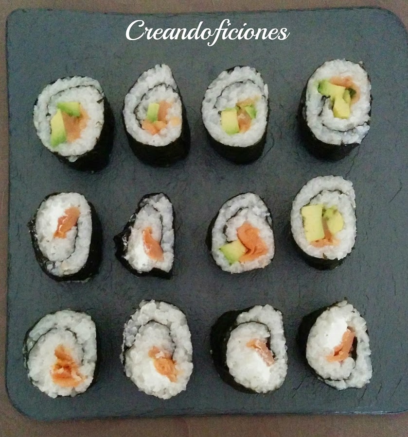 Me apetecía mucho hacer sushi y tengo que deciros que aunque es un poco laborioso, el resultado es muy bueno y esta muy rico. He seguido la receta para hacer el arroz de isasaweis y fenomenal. Animaros y veréis que quedaréis estupendamente y como si los hubieseis comprado. Podéis hacerlo con otros ingredientes como palitos de cangrejo, langostinos, apio, wasabi, zanahoria... Empezamos.