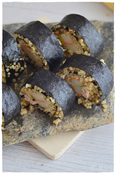 Esta versión sana del sushi llevó viéndola en redes sociales bastante tiempo, y vasta que me guste tanto la quinoa para probarlo.