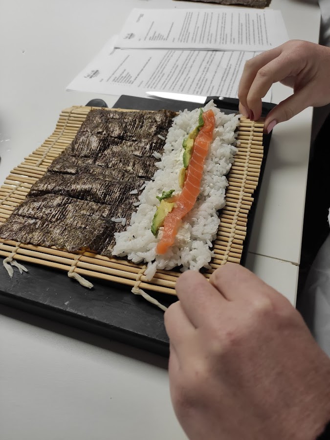 Cerramos el sushi enrollando lentamente con la ayuda de la esterilla.