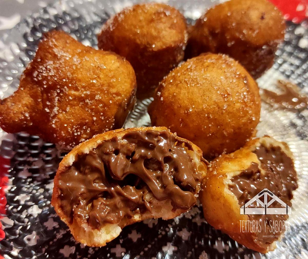 Si también eres amante de la nocilla o Nutella, una vez hechas con una manga pastelera y una boquilla fina se rellena de nocilla y finalmente se rebozan en la mezcla de azúcar/canela