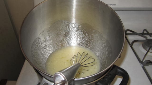 Preparacion:Poner al baño maria el bol de la Batidora con las claras y el azúcar.