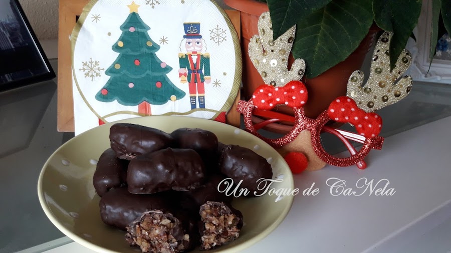 Pasar los bombones por el chocolate, poner en papel vegetal y al frigo para que endurezcan.