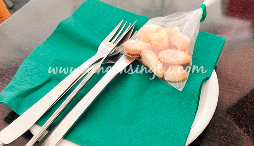 Para diferenciar los platos celíacos, sirven cada uno de ellos bajo una servilleta de color verde (los platos que no van destinados a celíacos no llevan servilleta). Además, suelen ponerte una bolsita con picos sin gluten o con pan para celíacos, ¡elaborado por ellos mismos! En este caso, nos pusieron los picos sin gluten y estaban muy buenos, con un toque salado