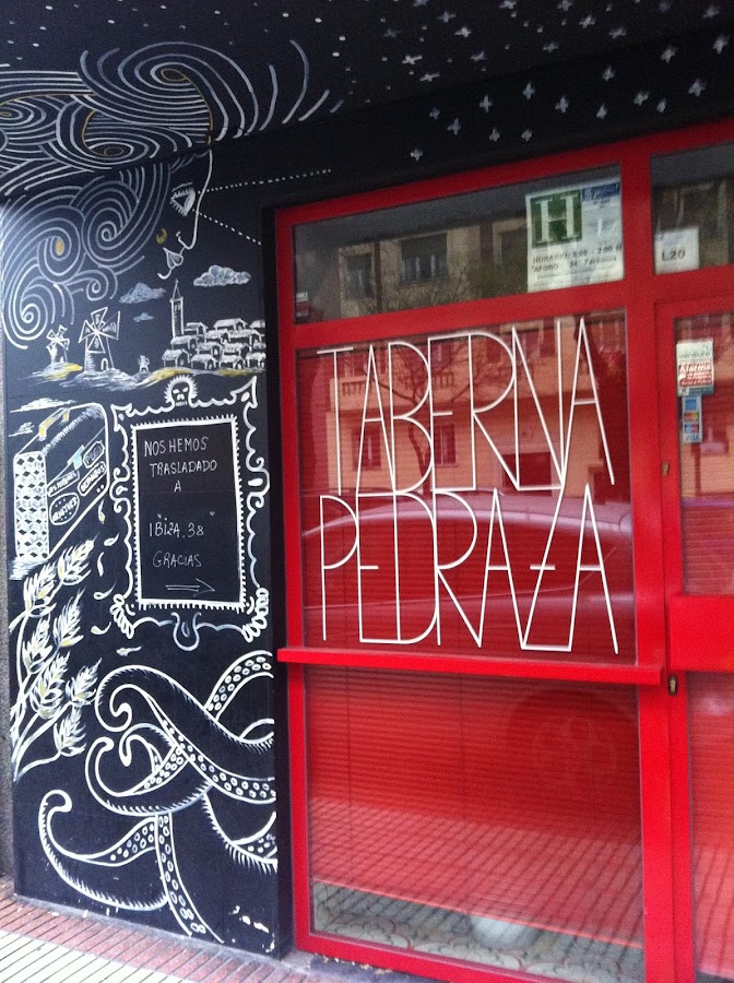 Hoy por fin conseguimos reservar en la Taberna Pedraza, un honesto restaurante en la C/Ibiza, 38, en Madrid.Por una casualidad fuimos espectadores de excepción pues estábamos situados en lo que ellos llaman "El palco". Es una zona de barra con vistas directas a la parrilla y con un camarero único, Samuel, que nos atendió maravillosamente y estaba pendiente de nosotros en todo momento.