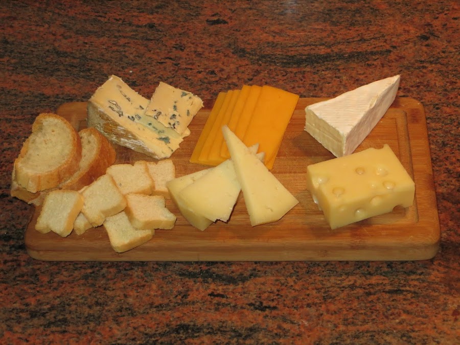 En este caso he empleado: una porción de queso brie, unas lonchas de queso cheddar, un trozo de emmental, un queso manchego semicurado y un delicioso queso azul suizo.