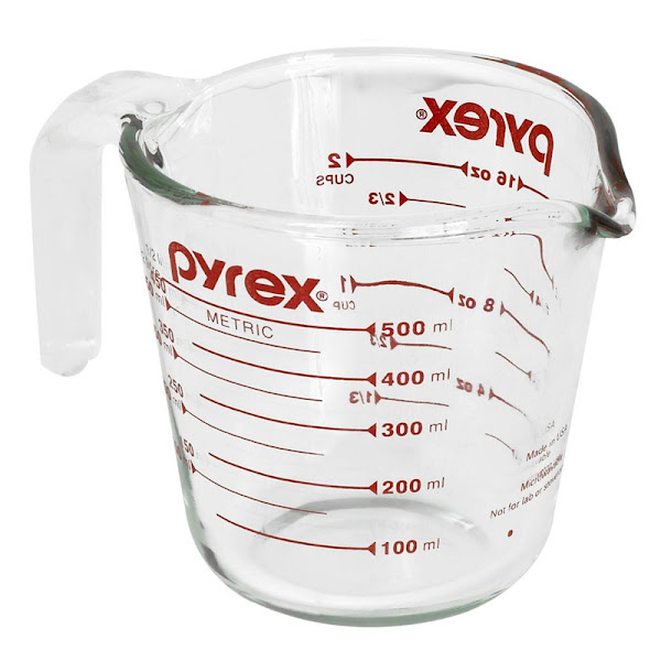 Lo siguiente es una Jarro Pyrex, dependiendo de su tamaño su valor va desde los $6.000 - $15.000 aprox. (10USD- 20 Usd) dependiendo de la marca, pero es muy util este jarro porque trae medidas en gramos, mililitros y tazas, además de ser apto para introducirlo al microondas y soportar preparaciones a alta temperatura; Yo lo tengo y lo ocupo muchisimo!