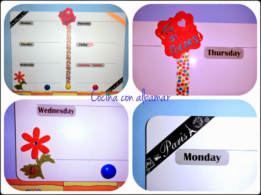 En este caso el tablero lo hice para mi hija mayor que le estaba costando acabar el curso y con cuatro detallitos que nos gustan a las dos, hicimos que la hora del estudio fuera más alegre!!