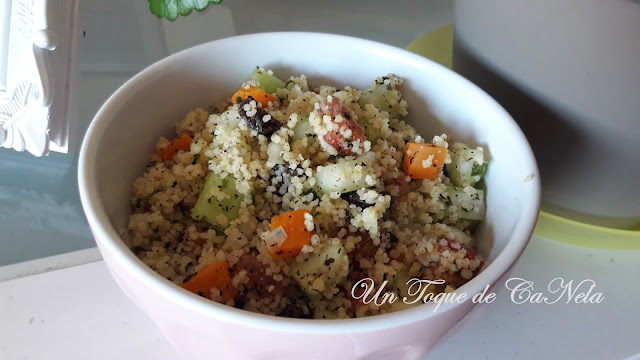 Poner a hervir el caldo o el agua con un poco de sal y cuando llegue a ebullición, verter sobre el cous cous y con chorrito de aceite. Dejar reposar lo que indique el fabricante.