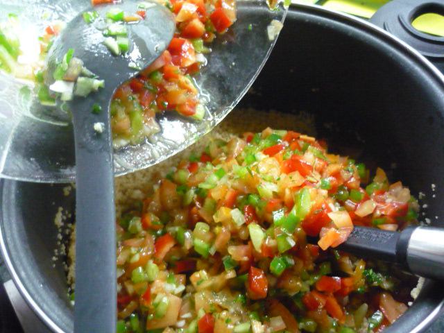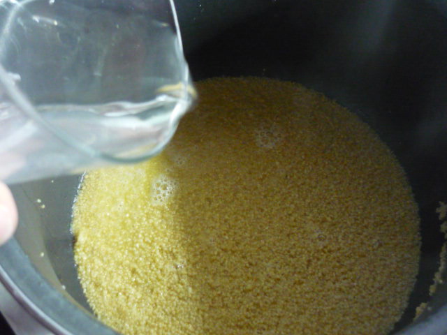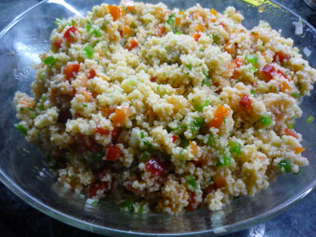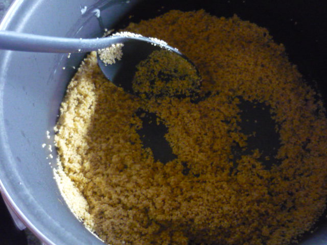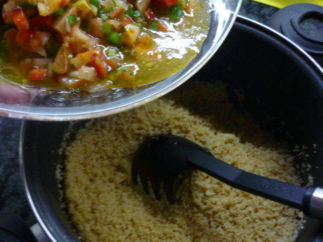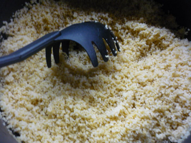 9.- Con un tenedor movemos el cous-cous para que quede suelto.