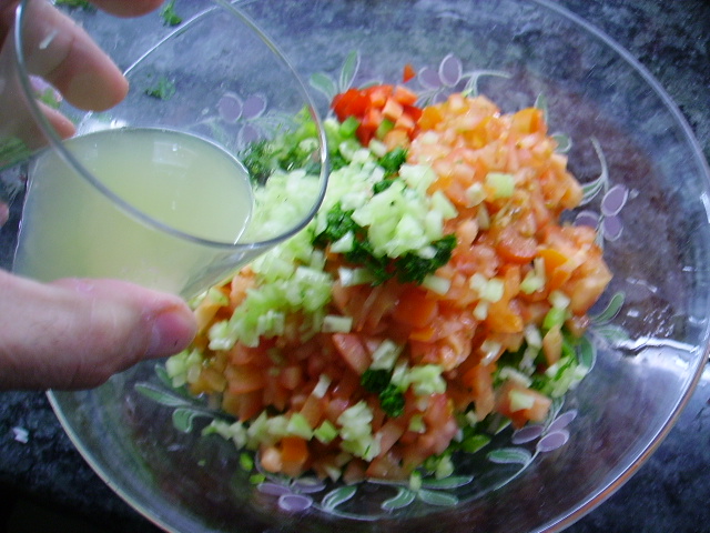 6.- Exprimimos dos limones y agregamos el zumo colado.