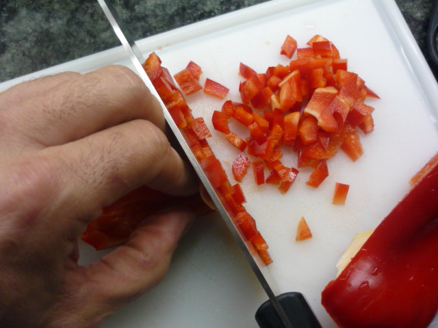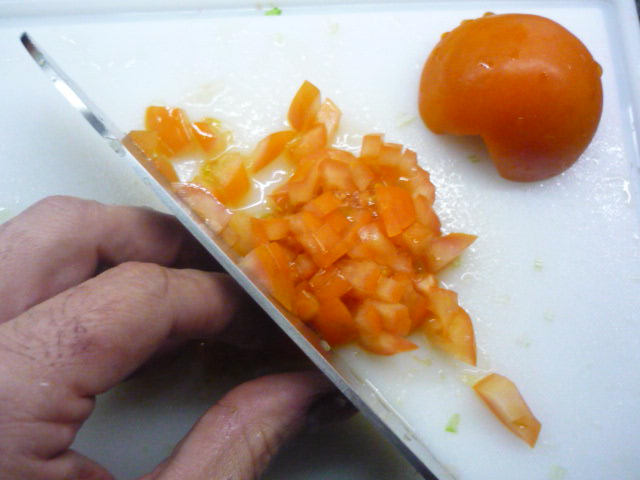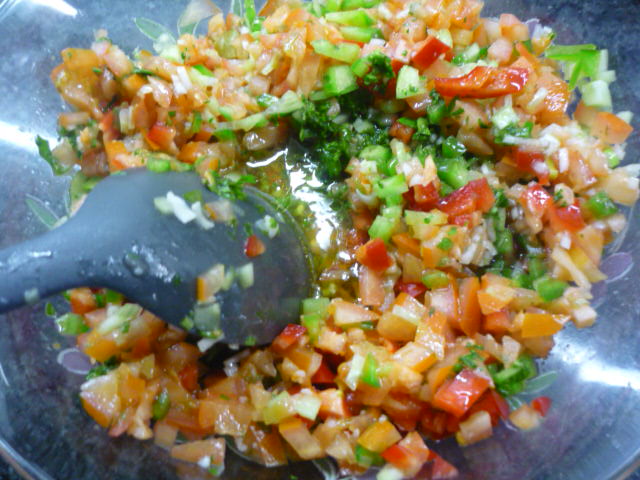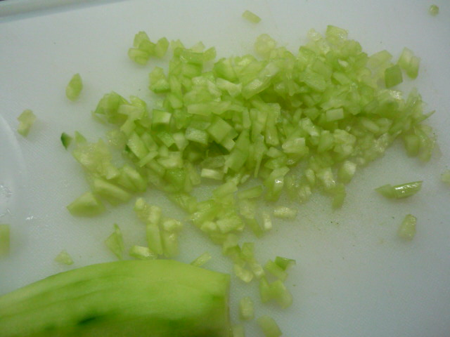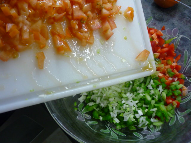4.- Mientras picamos toda la verdura muy fina y ponemos en un bol.
