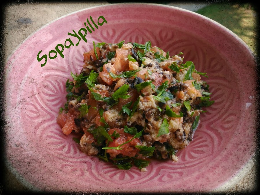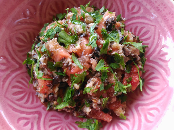 Ya estáis pensando...vaya! otro nombre raro....jijiji pues es otra receta que decidí que había que probar, del libro "pa amb tomaquet" y el nombre se lo debe a que es como un tabouleh pero con pa amb tomàquet, o sea catalán, y de ahí ese nombrecito. Un falso tabouleh que está delicioso y fresquito para el verano..animaros!
