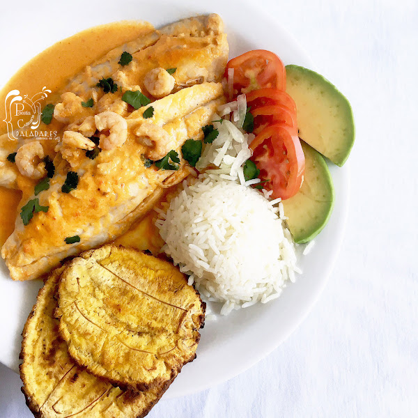 Encocado de corvina y camarones