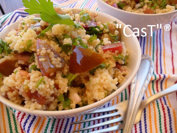 Escojo la variante marroquí sustituyendo el burgul por el cuscús y la latina sustituyendo el cilantro por el perejil y la cebolla blanca por la roja.