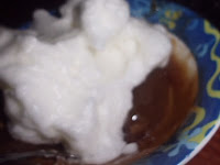 Mezcla la crema con las claras, yo he usado 3/4 de las claras montadas.