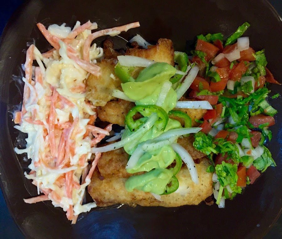 1.- Para deleitarnos con unos ricos taco fish tomas una tortilla de maìz calientita pones el pescado en la cantidad a tu gusto, agregas la salsa bandera, repollo con zanahoria y mayoneza y guacamole, unas gotitas de limon y ¡LISTO!