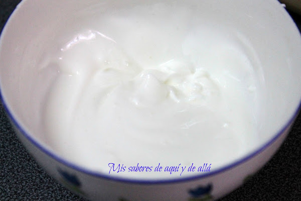 Por otro lado, preparamos la salsa, simplemente hay que mezclar un yogur griego añadiendo unas cucharadas de zumo de limón y añadiendo un poco de sal. Reservar.
