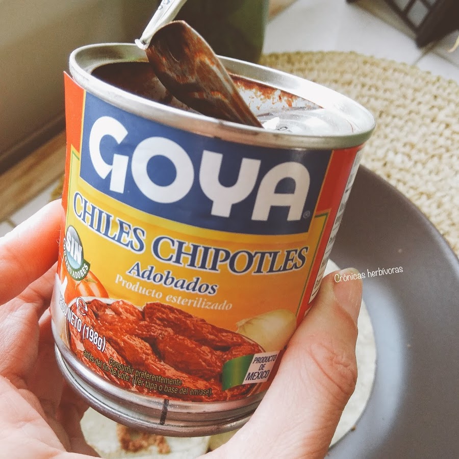 El único ingrediente más especial son los chiles chipotles adobados (ver foto abajo). Los venden en latitas en cualquier gran superficie o en tiendas de productos mexicanos. Pero si no los encuentras, simplemente sustitúyelos por especias como el chile en polvo o pimentón picante. Si no te gusta el pique pues usa pimentón dulce.