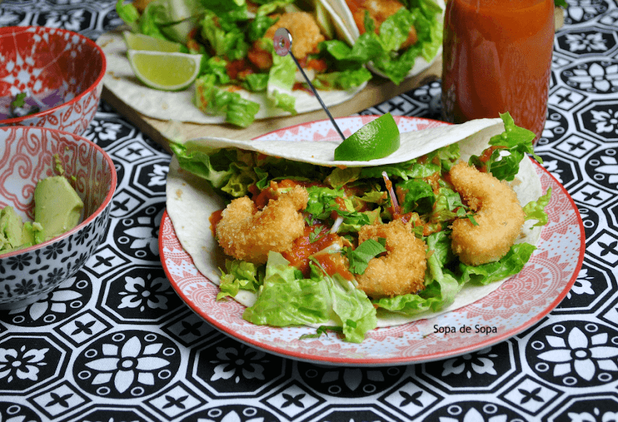 Los tacos los podemos rellenar de infinidad de ingredientes, pero esta vez he querido elegir unas gambas crujientes, además son fresquitos gracias a la cantidad de lechuga verde que lleva, así que con la bienvenida del buen tiempo nos viene fenomenal para disfrutarlos en la terraza.