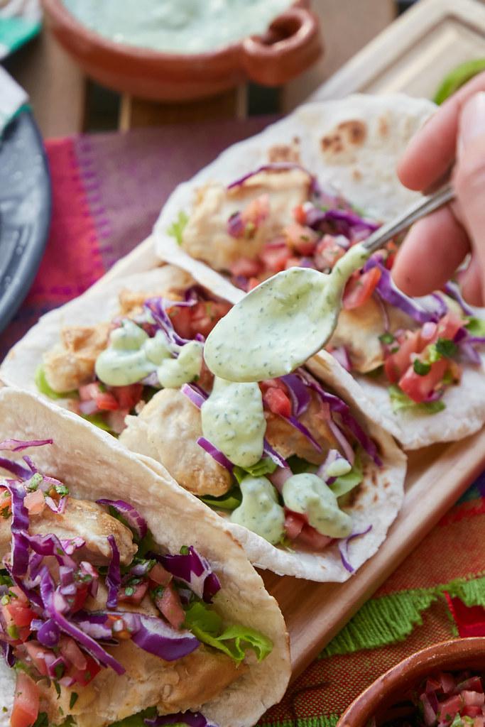 ¡AMO los tacos de pescado! Los descubrí el año pasado en nuestro viaje por México y se transformaron en uno de mis tacos favoritos. Me encantan porque son fresquitos, sabrosos y además fáciles de preparar (no requieren tanto tiempo de preparación como los clásicos al pastor, de cochinita pibil u otros).Esta receta está inspirada en los tacos de pescado estilo baja california, que dentro de su mezcla tempura (en la cual se reboza en pescado) lleva cerveza. También puedes hacerlos con agua con gas y el resultado es muy similar.