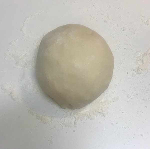 Añade la harina de trigo, el aceite y la sal, amasa 3 min/espiga. Pon la masa a una superficie ligeramente enharinada y forma una bola, envuélvela con plástico y deja reposar 30 minutos.