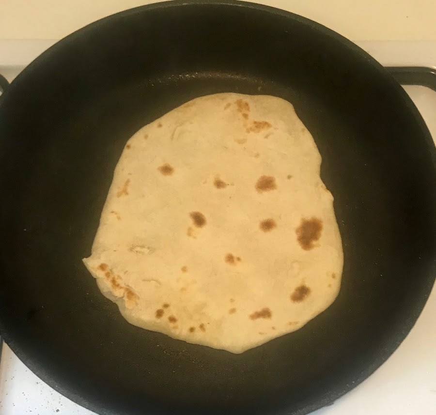 Divide la masa de los tacos en 6 partes, haz bolas y con un rodillo dales forma redonda, cocina de una en una en una sarten antiadherente hasta que salgan burbujas, dale la vuelta y así hasta terminar con todas.