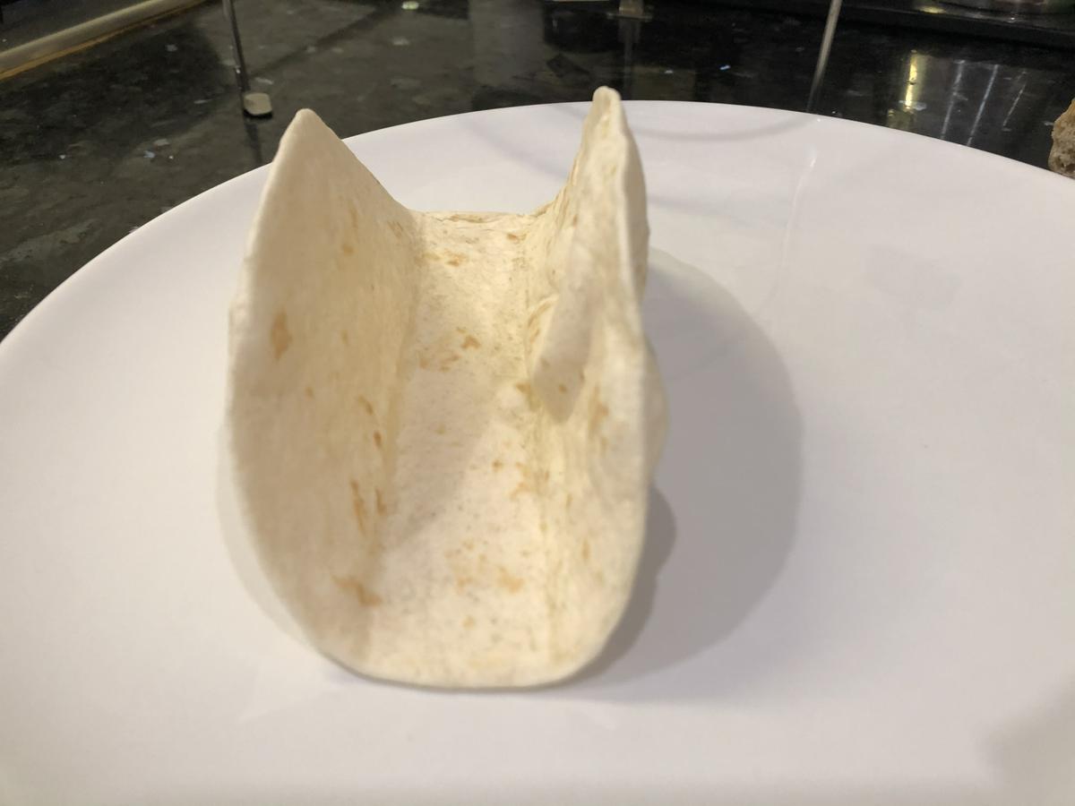 Así es como las he preparado hoy después de probar varias maneras. Se puede hacer también colocando la tortita dentro de un vaso durante unos segundos en el microondas. O calentado la tortita en la sartén y colocando seguidamente sobre un vaso tumbado. También con la rejilla dentro del horno, de la misma manera que en el microondas.