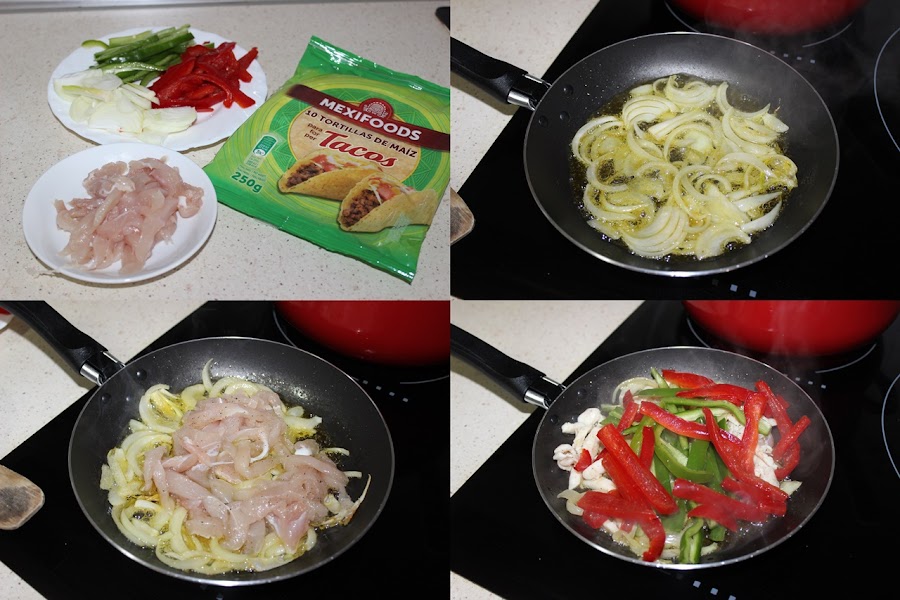 Unos tacos de pollo y pimientos que han quedado riquísimos y con los que hemos cenado muy bien.